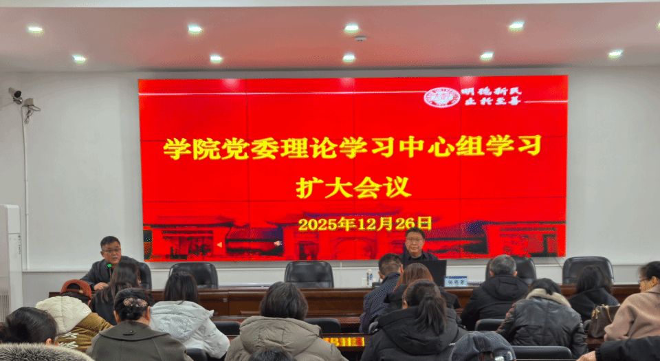 为深入学习贯彻党的二十届四中全会精神,按照学校党委统一安排部署,12月26日下午,文化旅游学院在学院202会议室召开党委理论学习中心组(扩大)会议,校理论宣讲团成员、校党委副书记、工会主席杨萌芽到院围绕党的二十届四中全会精神开展专题宣讲,学院领导班子成员、党支部书记、骨干教师及学生党员代表现场聆听报告。宣讲会由学院党委书记孔涛主持。