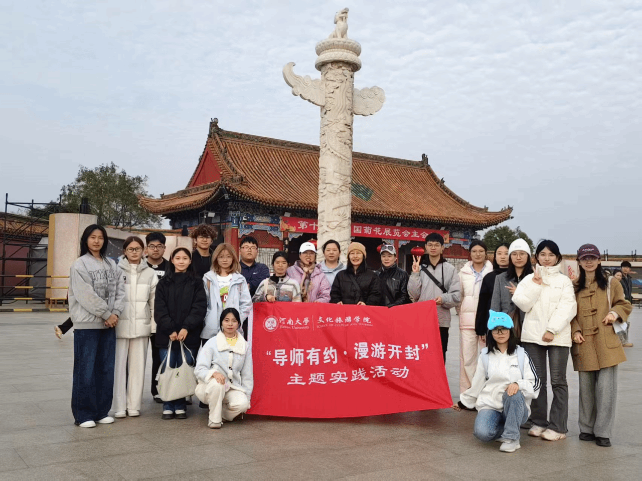 2025年11月6日以来,我院旅游管理系教师在周末带领本科生开展多期“导师有约·漫游开封”主题实践活动。该活动依托本科生导师制开展,旨在引导本科生熟悉开封文旅发展,加强学生对旅游管理专业的认知,促进师生之间的互动交流。