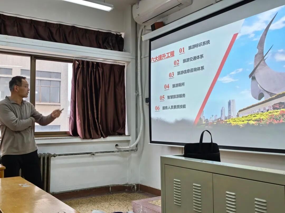 为深化学生对中国特色旅游目的地建设实践的认知,精准把握旅游公共服务建设的时代价值、现实成效与发展困境,课程负责人凌文锋特邀开封市文化广电和旅游局四级调研员张英俊做客课堂,以开封创建全国旅游标准化示范城市为实践蓝本,系统分享开封从文旅资源大市迈向全国知名热门旅游目的地的建设历程、公共服务体系构建成效与现实挑战。
