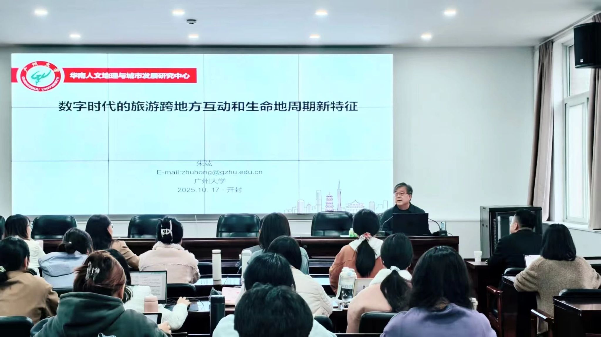 10月17日下午,博士生导师、教育部特聘教授、广州大学地理科学与遥感学院领军人才、广东省城市与移民研究中心主任、享受国务院特殊津贴专家朱竑教授应邀到访我院,以《数字时代的旅游跨地方互动与生命地周期新特征》为题,为我院师生带来了一场兼具理论深度与实践洞察的专题学术讲座。本次讲座由文化旅游学院执行院长李竞艳主持。