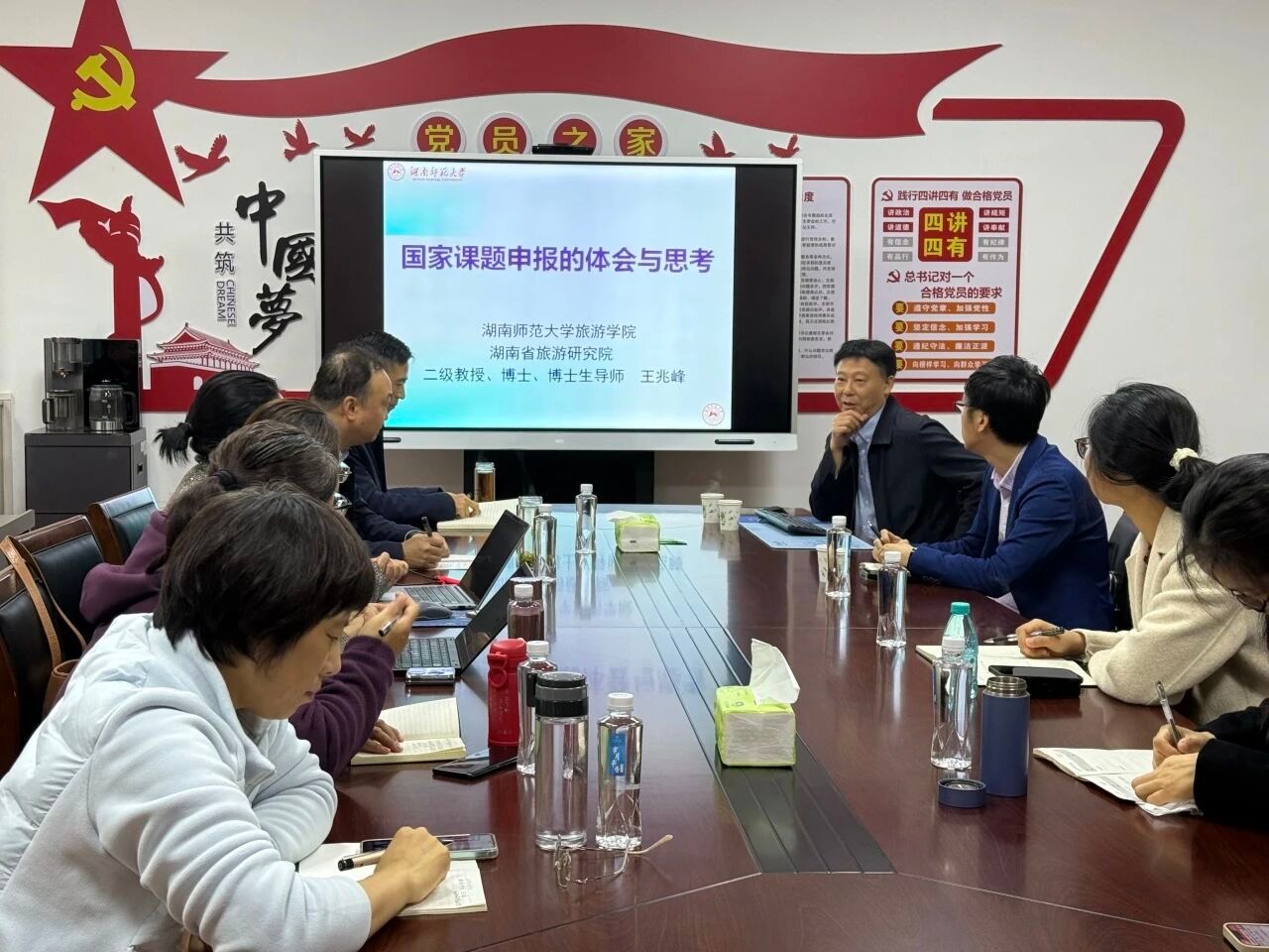 10月19日上午,国务院特殊津贴专家、教育部新世纪人才支持计划入选者、湖南师范大学旅游学院二级教授、博士生导师王兆峰教授,应邀到访河南大学文化旅游学院,以《国家课题申报的技巧与思考》为题,为学院师生带来一场聚焦课题申报实践、兼具指导性与实用性的专题学术讲座。本次讲座由文化旅游学院程遂营教授主持