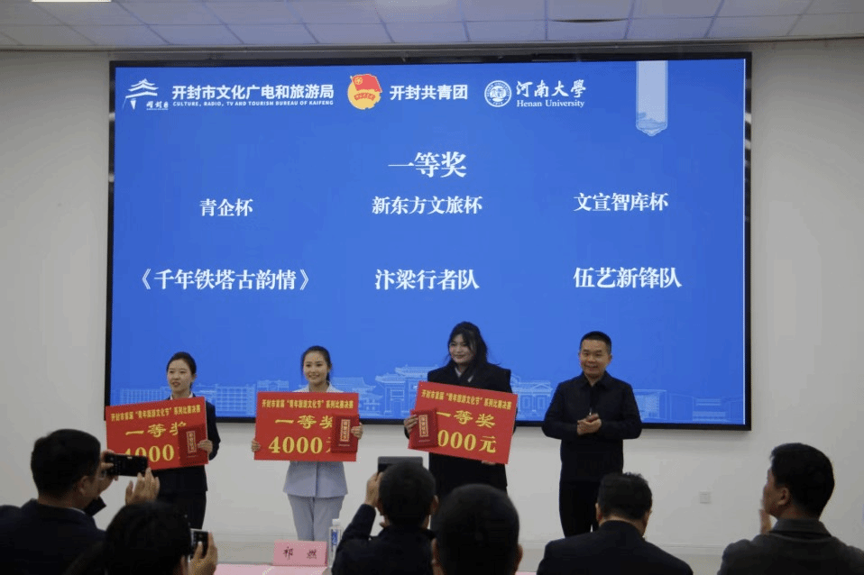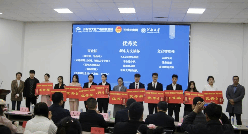 本次“青年旅游文化节”以“讲好开封故事,展现时代风采”为核心,设置“青企杯”导游大赛、“新东方杯”线路设计、“文宣智库杯”文创设计三大赛道,吸引全市各行业、多所院校青年踊跃参与,共有93个项目晋级复赛,33个项目通过复赛评选成功晋级决赛,覆盖文化讲解、线路策划、非遗文创等多个维度。经过决赛的激烈角逐,最终评选出一等奖3名、二等奖6名、三等奖12名、优秀奖12名。