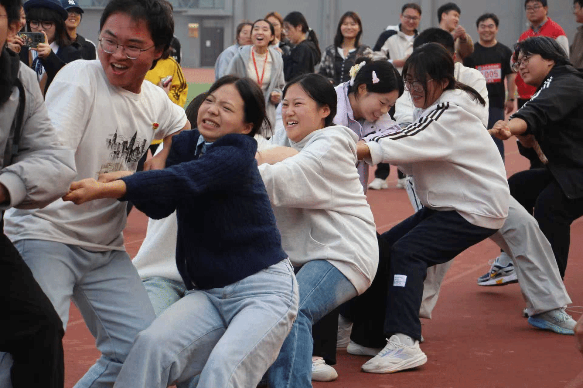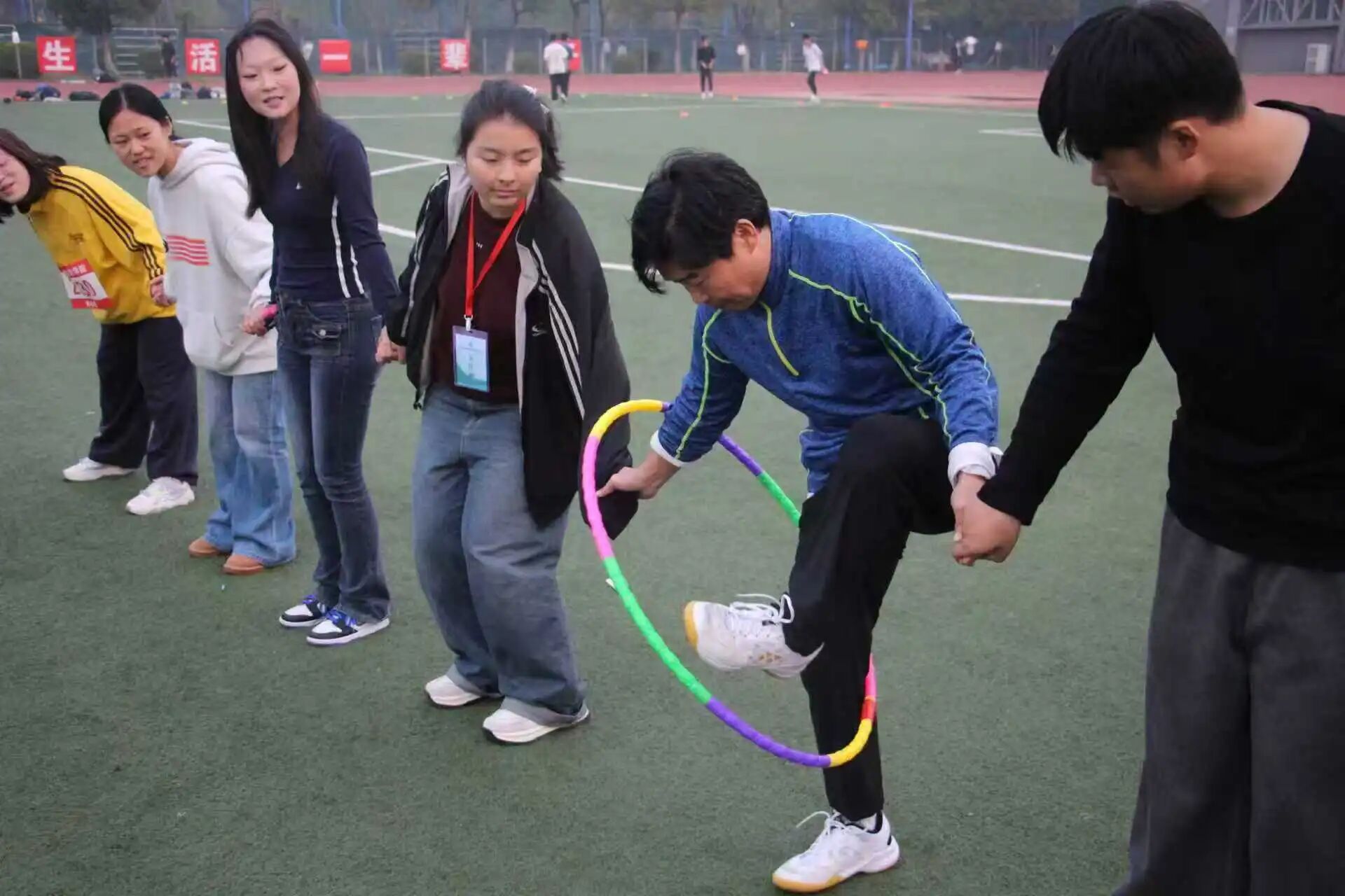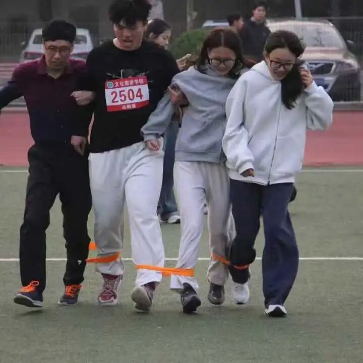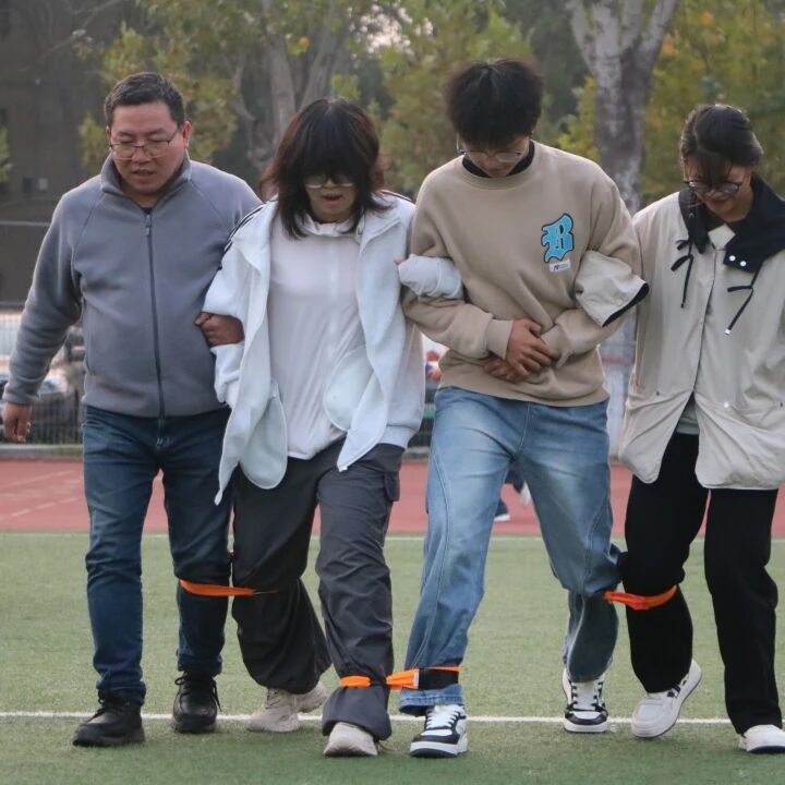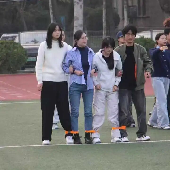 此次运动会不仅包含传统集体项目,还有一系列妙趣横生的趣味项目,“四人五足”项目中,四位选手并肩而立,师生相互配合,相邻的腿紧紧绑在一起,他们步伐统一、口号响亮,即便偶有失误跌倒,也能迅速互相搀扶、重新出发,展现其坚定的意志与团队协作能力。