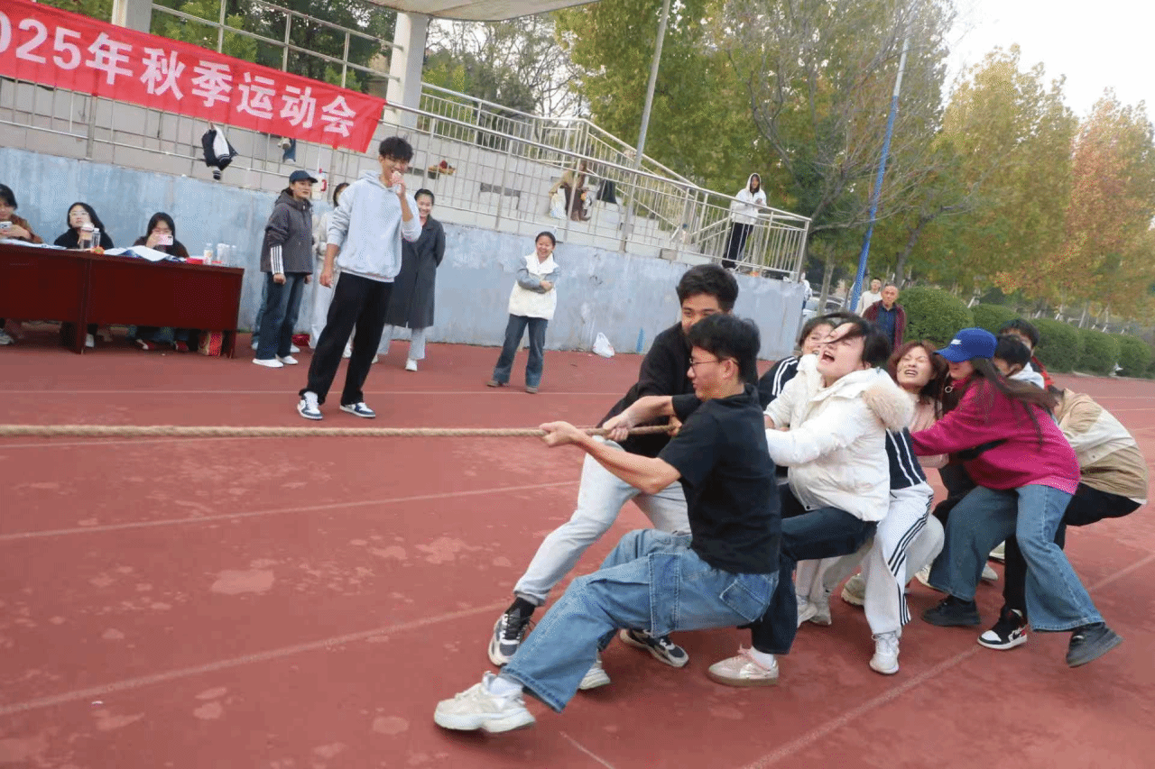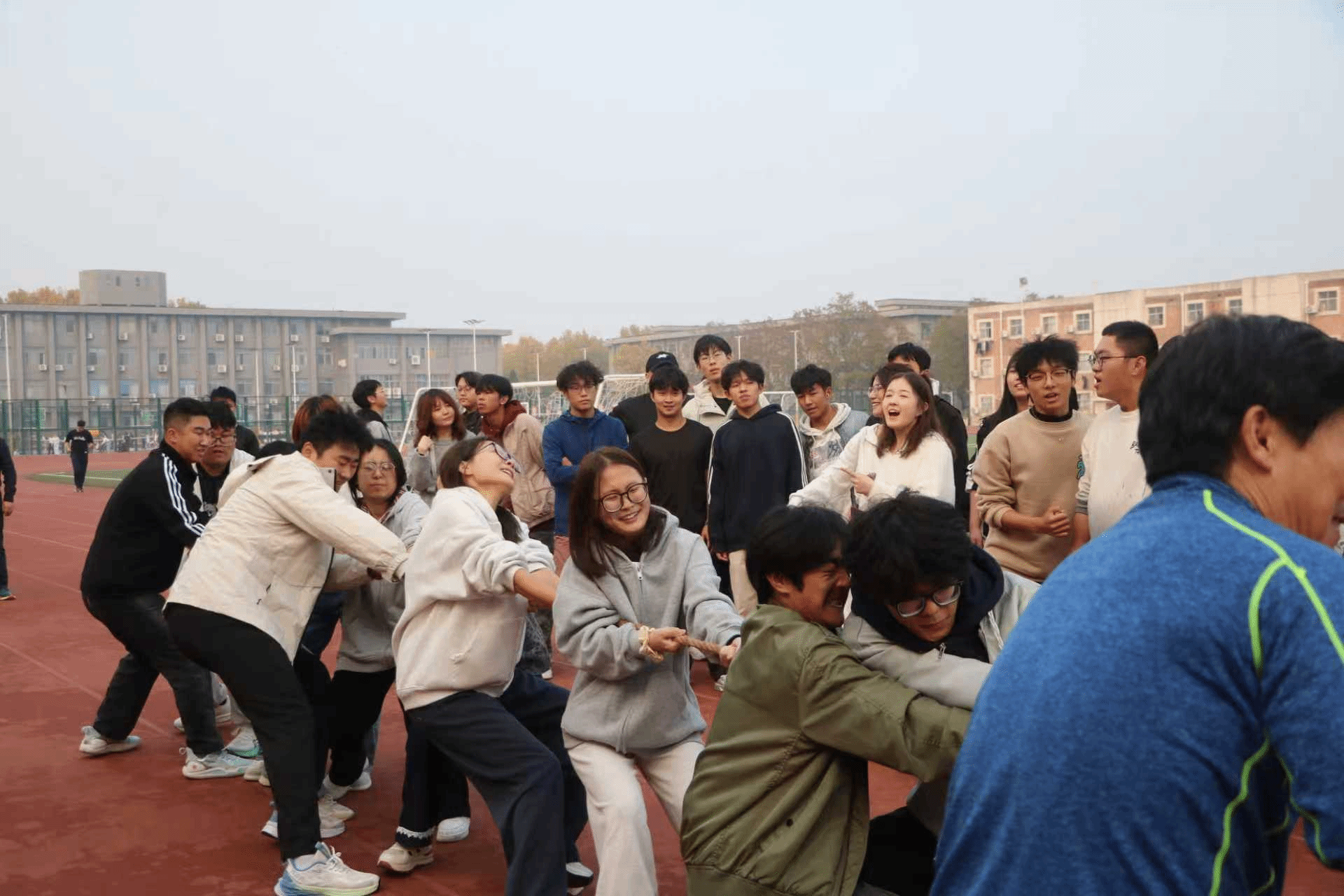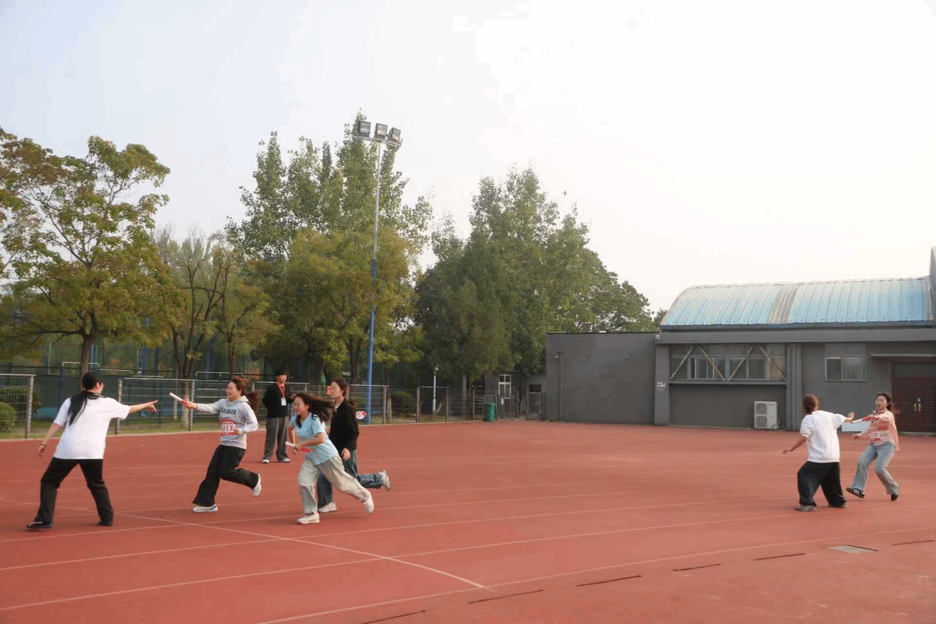 此次运动会不仅包含传统集体项目,还有一系列妙趣横生的趣味项目,“四人五足”项目中,四位选手并肩而立,师生相互配合,相邻的腿紧紧绑在一起,他们步伐统一、口号响亮,即便偶有失误跌倒,也能迅速互相搀扶、重新出发,展现其坚定的意志与团队协作能力。