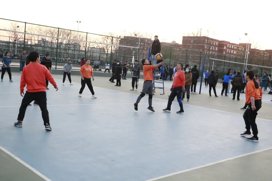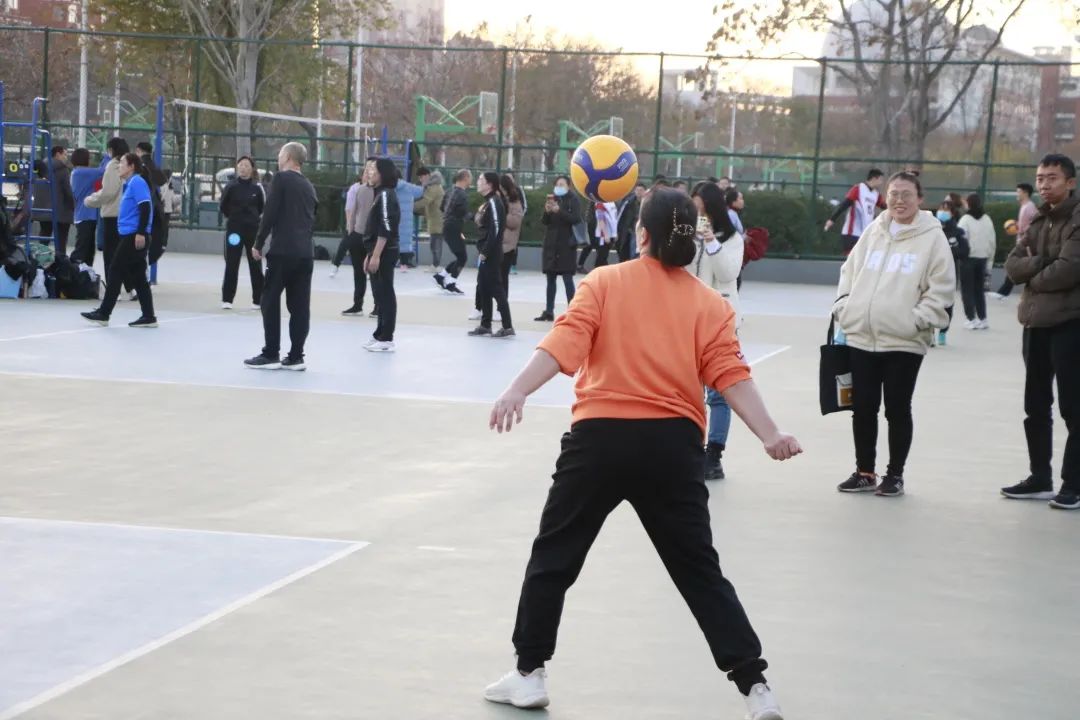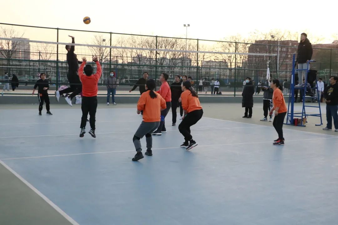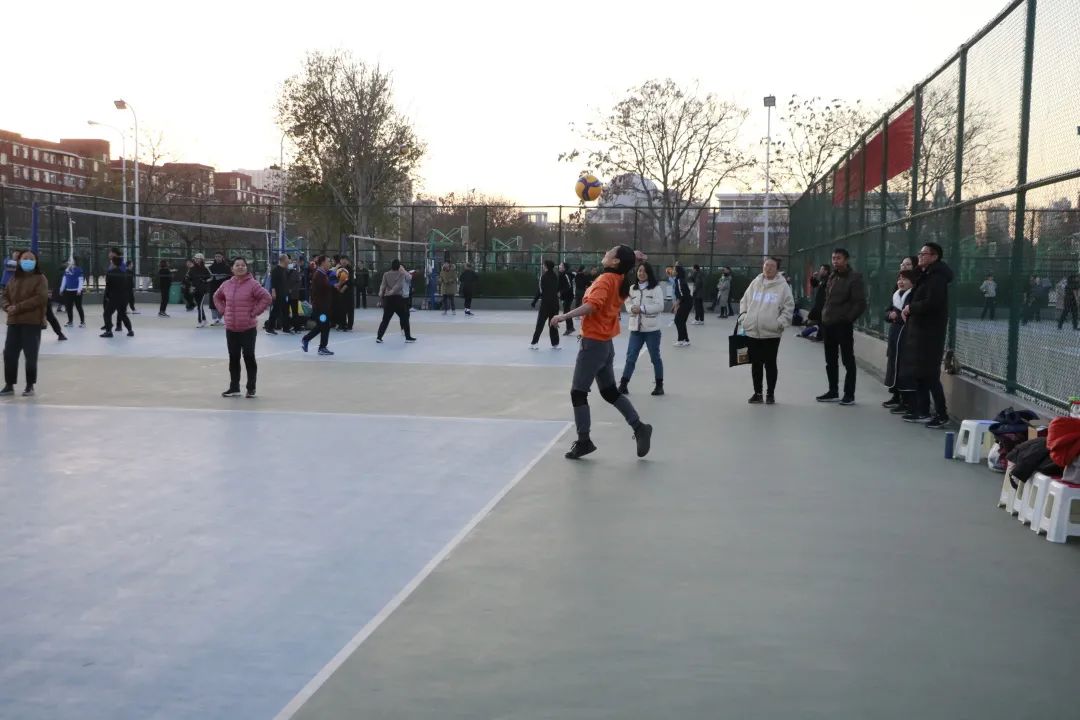 在这个天朗气清的傍晚,双方排球队队员如期到达排球场,比赛正式开始。双方队员全身心投入比赛,展开了激烈的角逐。排球在空中划出一道道弧线,一次次击入对方球场。五分,十分…… 比分持续攀升,在第一局比赛赛点处,我院教职工团队奋力一击,拿下首局胜利!