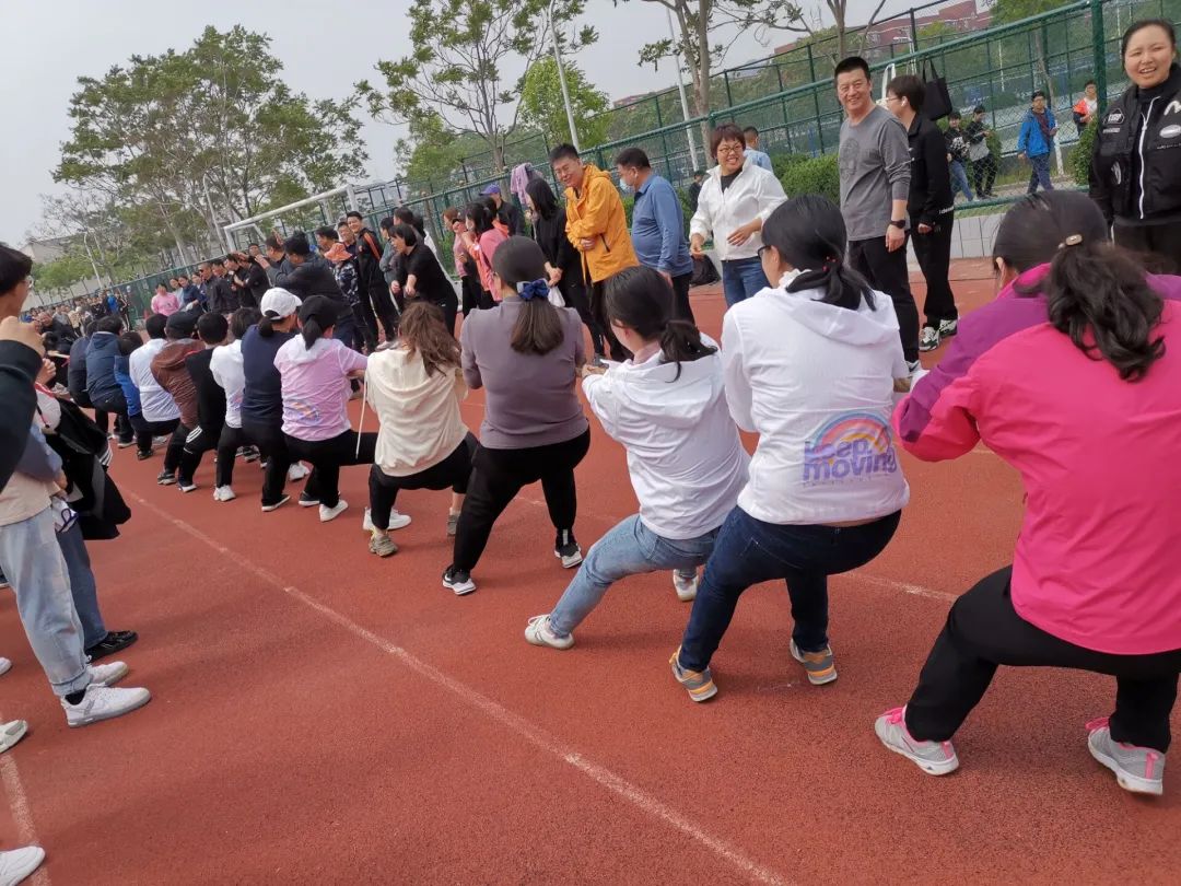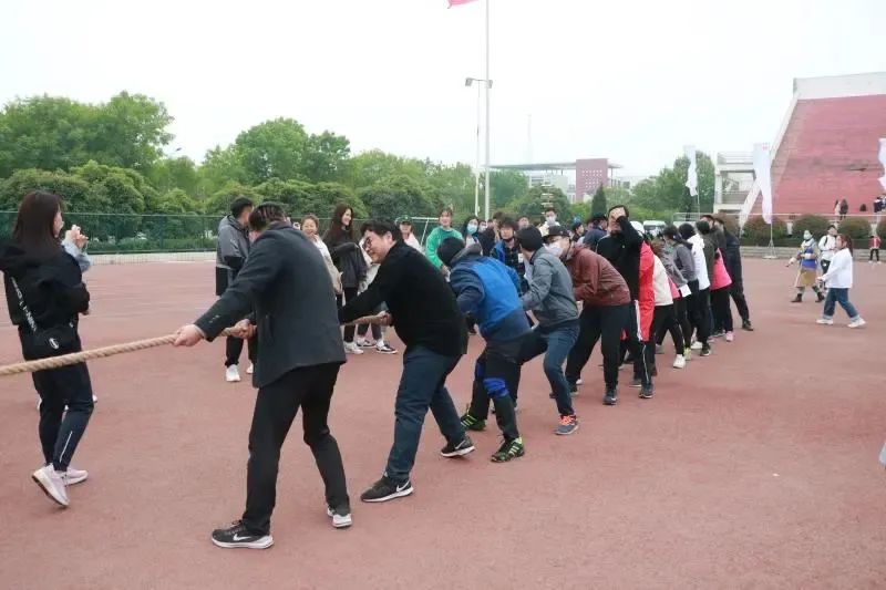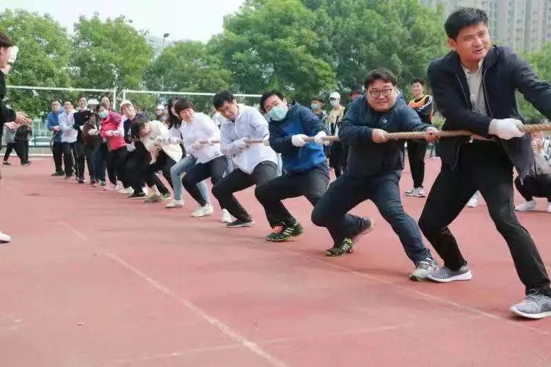 在老师组拔河决赛中,在第一轮,老师们激情高涨,拼尽全力,在同学们的加油声中,老师们取得了第一轮的胜利,顿时欢呼雀跃。虽然第二轮和第三轮我们并没有取胜,但每个人都已竭尽全力,拧成一股绳,我们虽败犹荣。