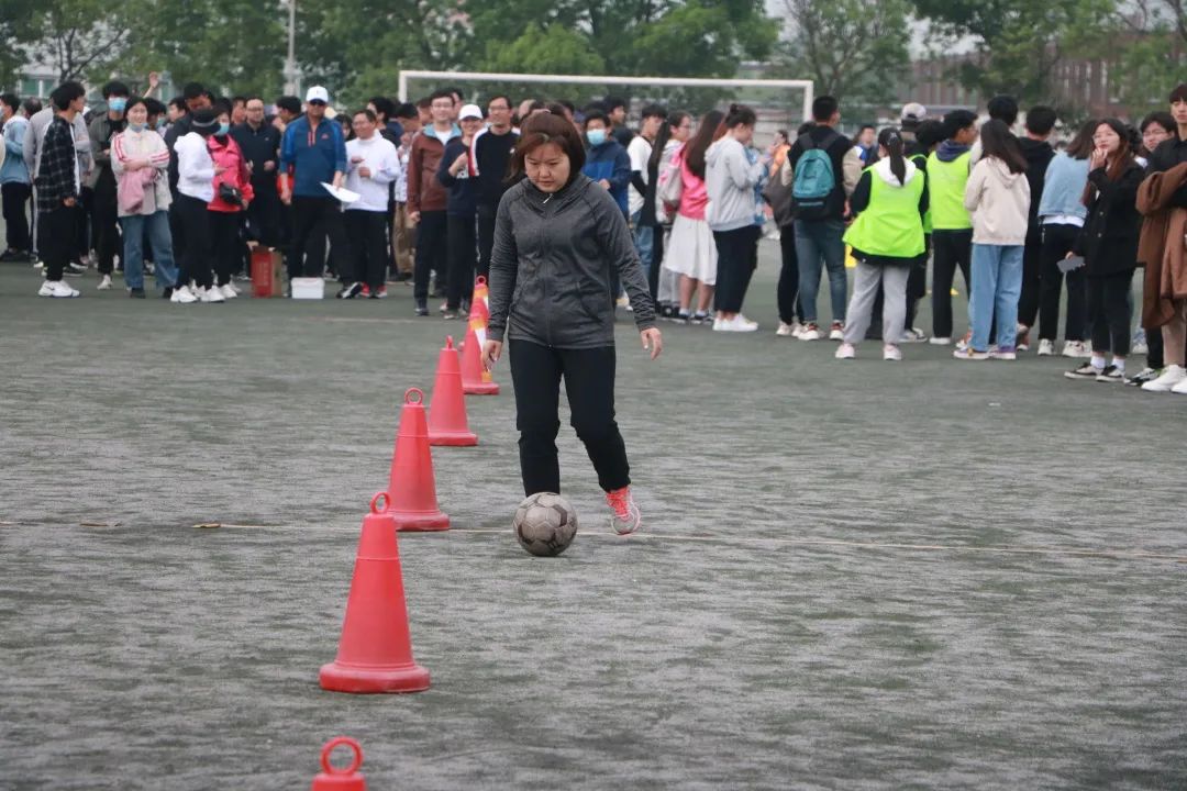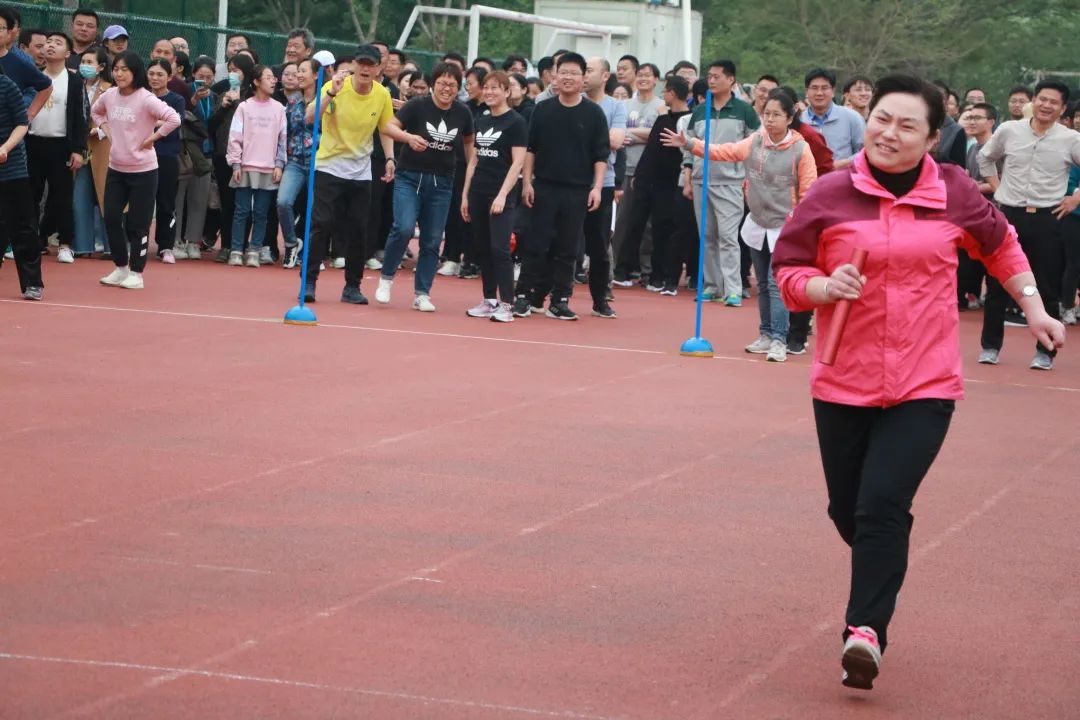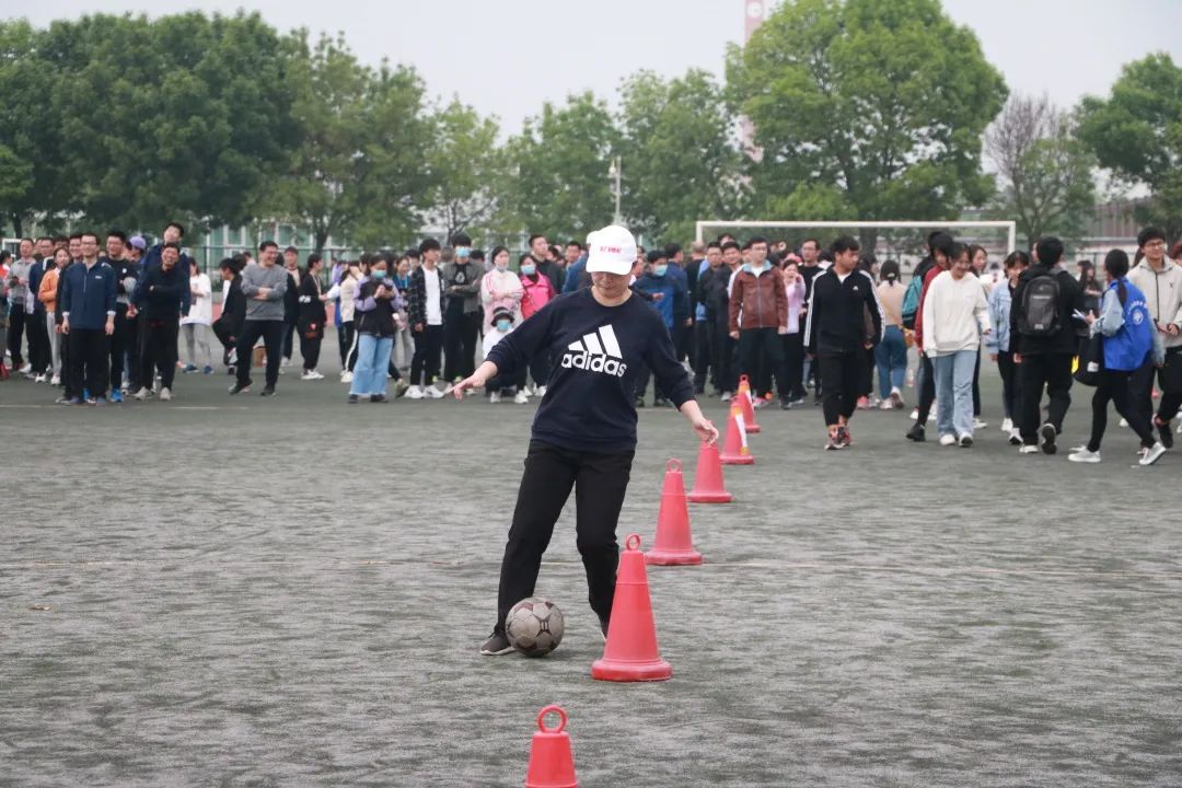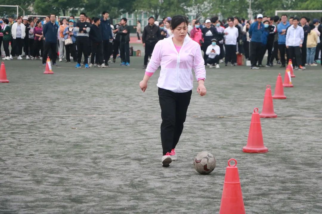 在教职工带球绕杆接力和50m迎面接力中,老师们身姿矫健、奋力奔跑,稳中求进,取得了不错的成绩。