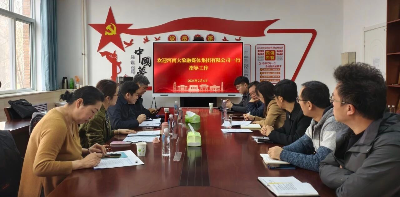 2026年2月4日,河南大象融媒体集团一行来我院进行交流座谈,围绕共建“河南大学数字文旅特色行业学院”展开深度洽谈,共商产教融合新路径,推助数字文旅产业高质量发展。河南大象融媒体集团文旅融创中心主任刘冠杰、副主任张幸雯,河南省数字经济产业协会副会长张晓彬,河南省数字经济产教融合共同体副秘书长丁燕,我院执行院长李竞艳、副院长张召鹏及系室主任张野、李涵闻、袁箐共同参会。会议由张召鹏主持。