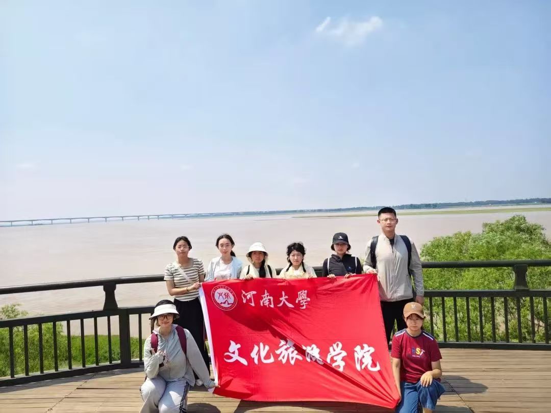 “九曲黄河万里沙,浪淘风簸自天涯”,开封水稻乡黄河观景台坐落于开封黄河黑岗口生态修复绿化景观工程项目区,北靠黄河,南邻黑池,是沿黄生态廊道建设的重要节点。团队前往黄河观景台进行了考察,在宽阔的观景台上观赏到黄河滚滚东流,浩荡无边的雄浑壮丽。同时,在黄河河势观测台,我们看见了历年来黄河水位的上涨,每一分厘的变化背后都隐藏着政府对黄河的关切。由此,团队对黄河周边景观有了初步了解,为后续相关旅游规划奠定了认知基础。