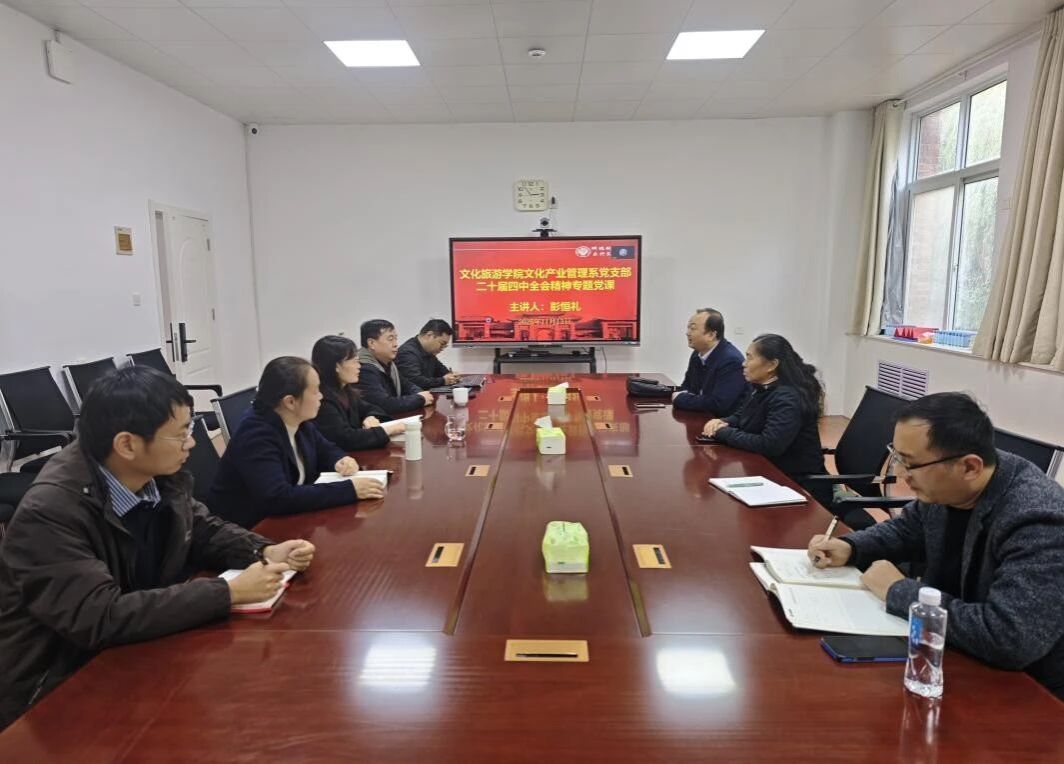 为深入学习贯彻党的二十届四中全会精神,深刻领会党中央关于文化建设的战略部署,文化产业管理系党支部于2025年11月13日下午在学院212会议室举行党的二十届四中全会精神专题党课。本次党课由支部成员彭恒礼教授担任主讲。